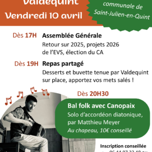 Programme : À Saint-Julien-en-Quint : Samedi et dimanche 10h-18h, à la salle des fêtes : – musée d’un jour « L’école à Quint d’hier et d’aujourd’hui » : reconstitution d’une classe à 3 époques, exposition d’affiches pédagogique, de photos et d’objets, animations ludiques. – écoutes de capsules sonores d’ancien·nes de la vallée, sur la vie d’antan, […]