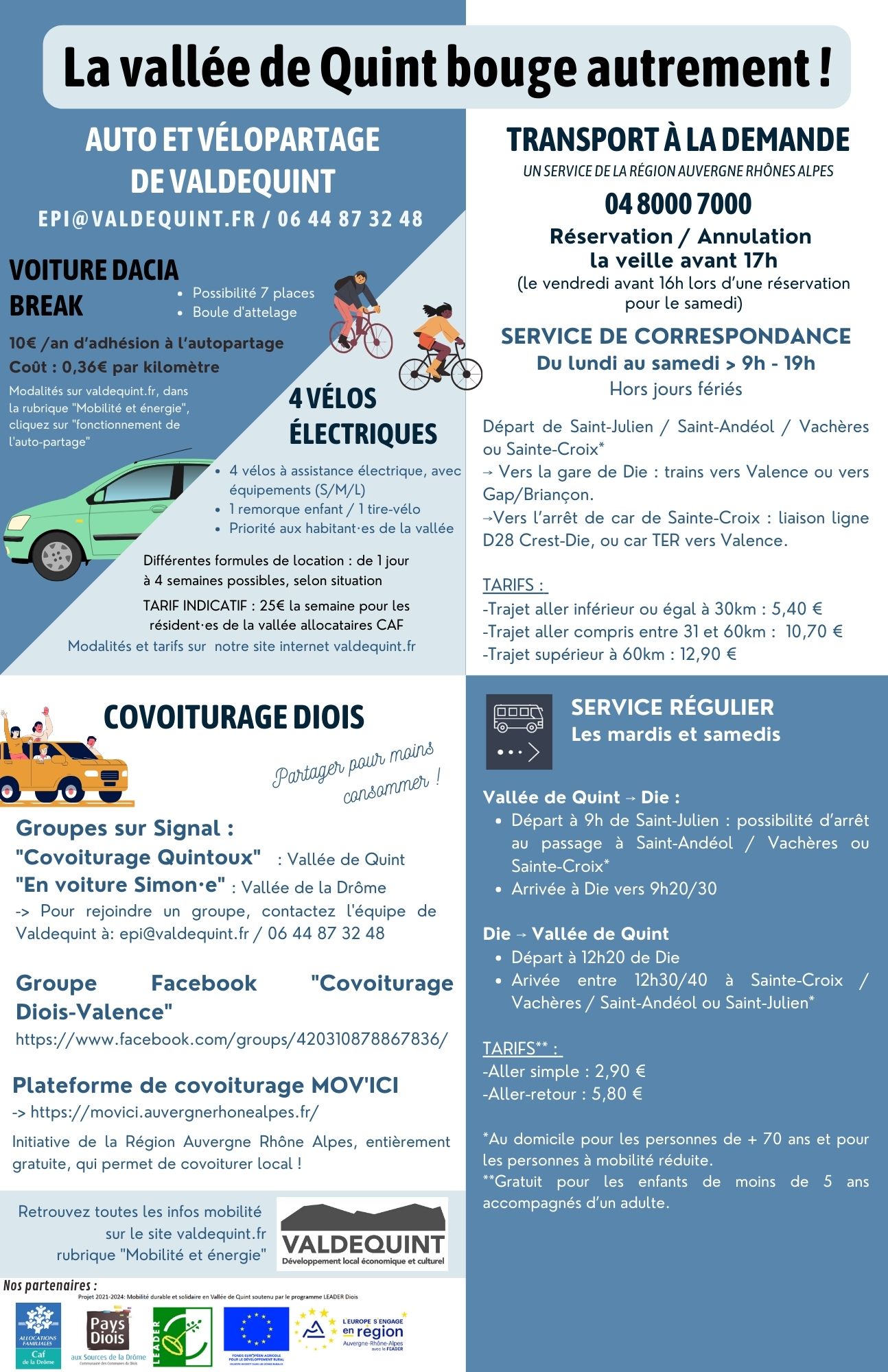 L’association Valdequint recense régulièrement les solutions de mobilité existant en vallée de Quint.